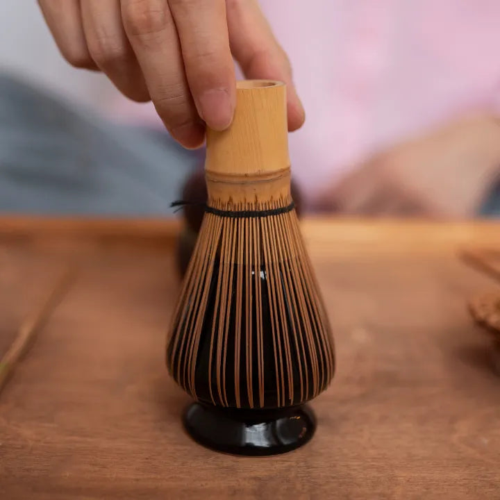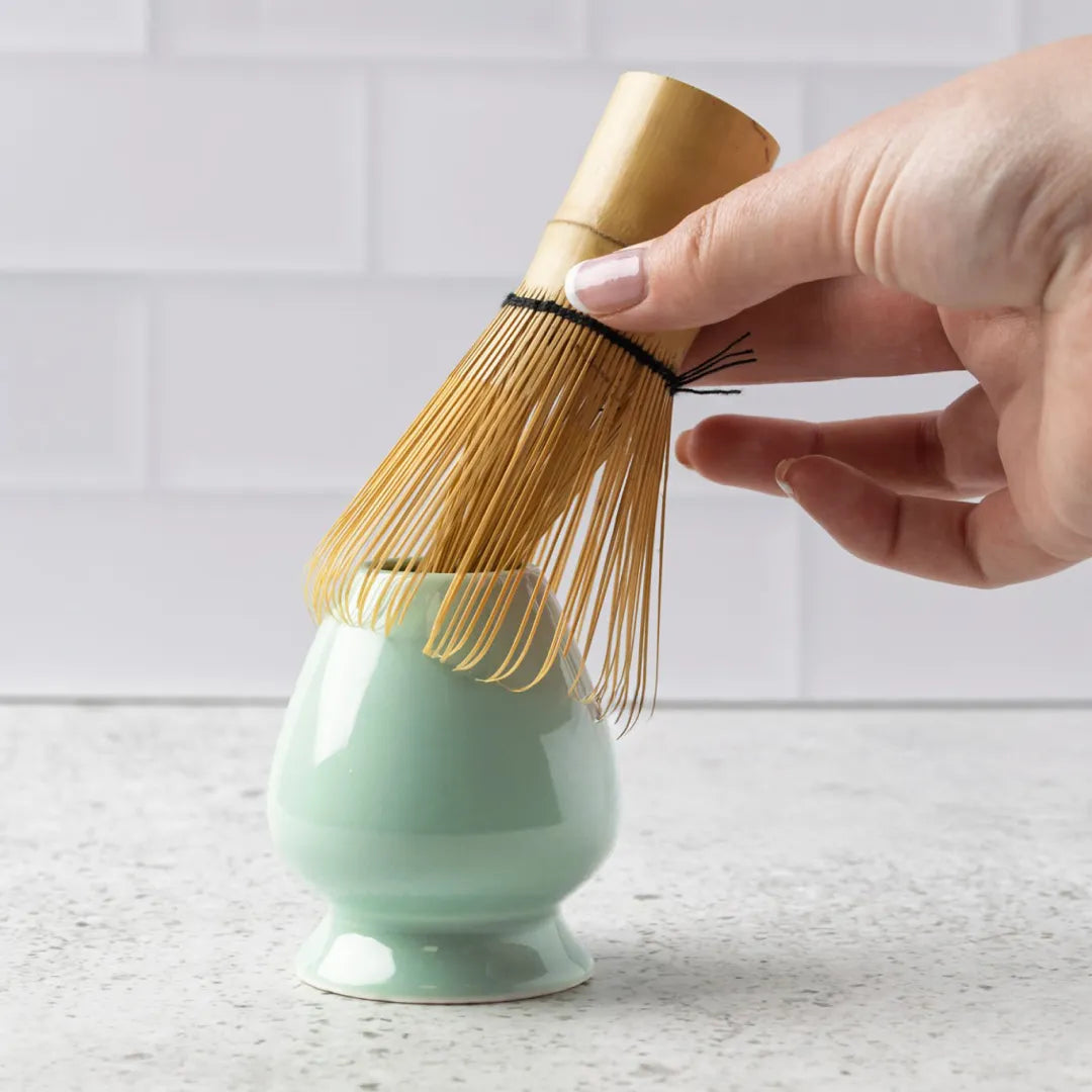 In addition to cleaning and rinsing your matcha whisk, you may also want to place it on a matcha whisk holder. The matcha whisk holder is made out of clay or porcelain and it helps to retain the shape of the matcha whisk when it’s not being used. If you don't have a matcha tea whisk holder, make sure not to leave your matcha whisk on its side, or it will begin to lose it’s shape and become flatter overtime. Soon we will be selling a matcha whisk and holder together so stay tuned for our new offerings!