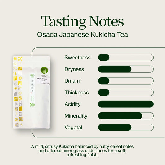 De smaak van een Japanse stengel groene thee is veel milder vergeleken met theesoorten zoals Sencha en Gyokuro . De thee heeft een lichte stro- of hooiachtige ondertoon en je voelt de mineraliteit van de thee tijdens het drinken. Japanse stengelthee bevat ook minder cafeïne, omdat de stengels van de theeplant veel minder cafeïne bevatten dan de bladeren.