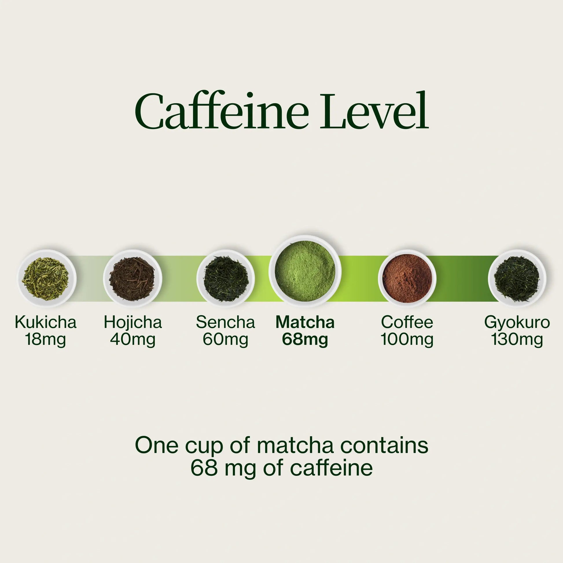 Drinkt u uw matcha liever met wat lekkere plantaardige melk en een beetje suiker? De Latte Grade Matcha is de juiste keuze voor u. Deze matcha heeft een sterkere smaak die beter combineert met room en suiker, zodat u nog steeds een krachtige matchasmaak krijgt. Deze matcha is ook betaalbaarder, dus je hoeft er minder zuinig mee te zijn. Doe een schepje of twee in je ochtendlatte of smoothie en profiteer van alle voordelen van groene thee! Net als onze andere theesoorten is deze matcha geteeld zonder pesticiden of chemicaliën en wordt hij geproduceerd door een kleine familieboerderij in Shizuoka.